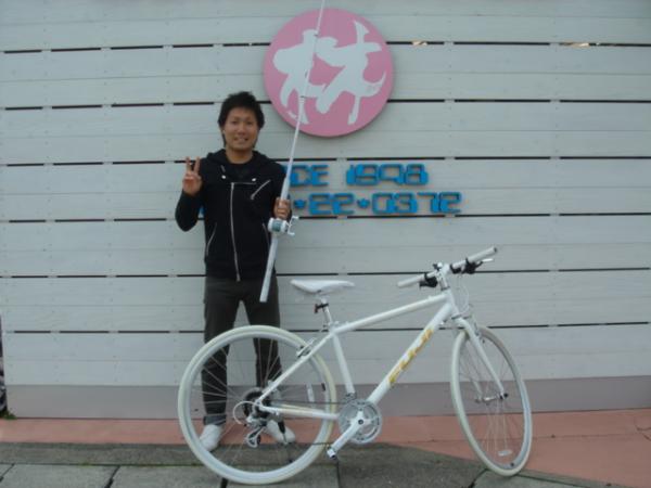 白い自転車に、白い釣り竿でいいっすね!