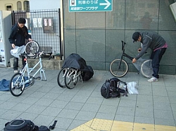 朝8時位に阿南駅を集合。せっせと輪行袋?に愛車を詰め込みます。
