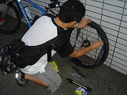 ・・・っで集合場所のコンビニで早速1台パンク、早朝5時前からえらい見事な釘が刺さってくれてるやんしかし。っで修理ソッコウ終わらして・・・