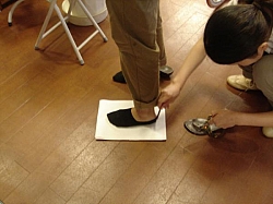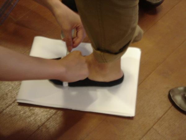 っで調子に乗り先日、自分と妻の分をオーダー(SPD用とかでなくて普通に外出用の革靴です)いたしました。(一番右の写真が私の紙型?です)