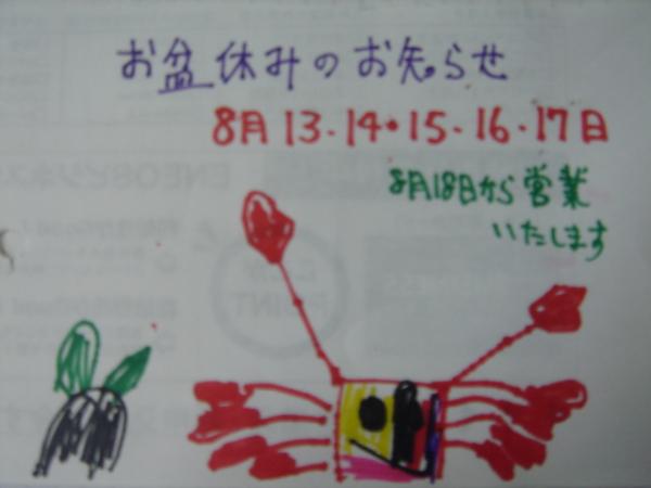 | お盆休みのお知らせです。 |