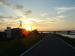 ・・・朝日をバックに那賀川の土手を走るのは気持ちええなあ・・・途中冷たい山水に疲れた足を浸してリフレッシュ出来るし、コリャ最高やなあ!!