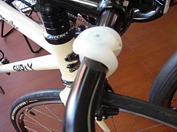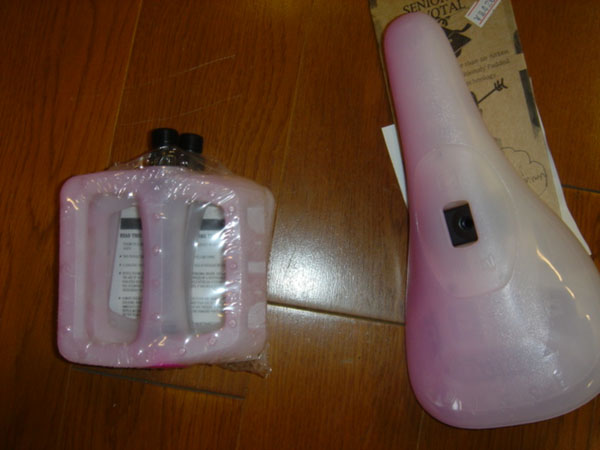最初シロ~いペダルとサドルが太陽の光を浴びたらどんどん(約20~30秒)で色が変わってまうんです!下の写真わかるでえ?ほんまどないなっとうだろなあ?