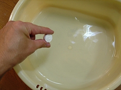 いやいやご覧あれ・・・直径20mmの白い物体が、水につけると何やら変形しましたよ。