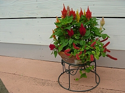 あと店の前にはケイトの花と何か分からん花がいいアンバイに咲いとんよ。(ケイトの下に植わっとう動物のしっぽみたいな花、誰か名前が分るんだったら教えてよ)